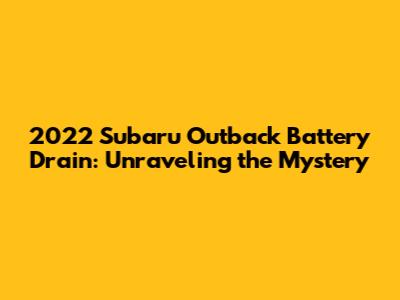 2022 Subaru Outback Battery Drain: Causes & Solutions