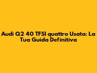 Audi Q2 40 TFSI quattro usata: Se stai pensando di acquistare un' Audi Q2 40 TFSI quattro usata, sei nel posto giusto! In questa guida completa, esploreremo tutto ciò che c'è da sapere su questo modello, dai vantaggi e svantaggi alle caratteristiche tecniche, passando per i consigli per un acquisto sicuro e consapevole. L'Audi Q2 è un SUV compatto che ha conquistato il cuore di molti automobilisti grazie al suo design accattivante, alle dimensioni contenute e alle prestazioni brillanti. La versione 40 TFSI quattro, in particolare, offre un mix perfetto di potenza, trazione integrale e tecnologia all'avanguardia. Ma cosa rende l'Audi Q2 40 TFSI quattro usata una scelta interessante? E quali sono gli aspetti da valutare attentamente prima di procedere all'acquisto? Iniziamo subito a rispondere a queste domande, analizzando i pro e i contro di questo modello e fornendo utili consigli per una scelta informata. L'acquisto di un'auto usata può essere un'ottima opportunità per risparmiare, ma è fondamentale fare le giuste verifiche per evitare sorprese. Con questa guida, ti aiuteremo a muoverti nel mercato dell'usato con sicurezza, fornendoti tutte le informazioni necessarie per trovare l'Audi Q2 40 TFSI quattro usata perfetta per te. Quindi, preparati a scoprire tutto ciò che c'è da sapere su questo modello e a fare un acquisto consapevole e soddisfacente. Che tu sia un neofita o un esperto di auto, questa guida ti sarà di grande aiuto per orientarti nel mondo delle auto usate e per prendere la decisione migliore per le tue esigenze e il tuo budget. Non perdere altro tempo, iniziamo subito l'esplorazione dell'Audi Q2 40 TFSI quattro usata! Ricorda, fare una scelta informata è il primo passo verso un acquisto felice. Preparati a diventare un vero esperto di Audi Q2!