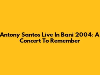 Antony Santos Live In Bani 2004: A Concert To Remember