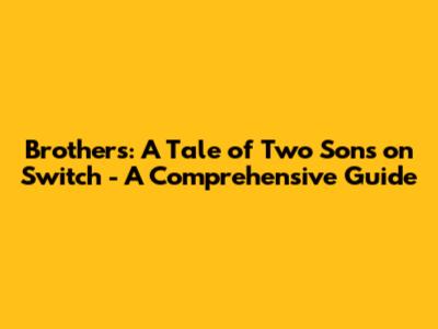 Brothers: A Tale Of Two Sons On Switch - A Comprehensive Guide