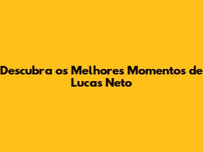 Descubra Os Melhores Momentos De Lucas Neto