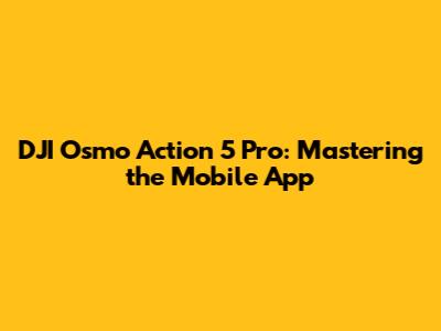 DJI Osmo Action 5 Pro: Mastering The Mobile App