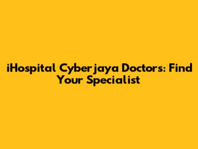 Finding the right doctor is crucial for your health and well-being. If you're looking for a doctor at iHospital Cyberjaya, you're in the right place! This guide provides information on how to find the best specialist for your needs at iHospital Cyberjaya. We'll cover everything from navigating the hospital's website to understanding the different specialties available. Let's dive in!