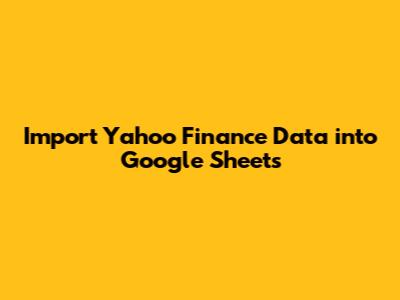 Import Yahoo Finance Data Into Google Sheets