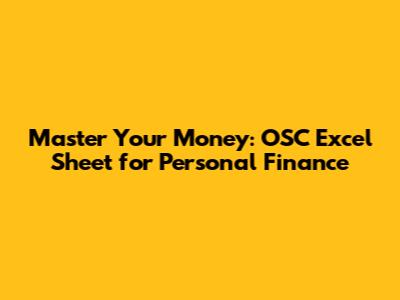 Master Your Money: OSC Excel Sheet For Personal Finance