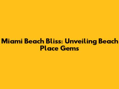 Miami Beach Bliss: Unveiling Beach Place Gems
