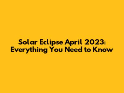 Solar Eclipse April 2023: Everything You Need To Know