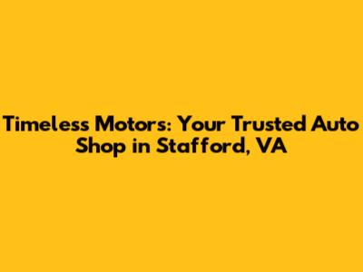 Hey guys! Are you looking for a reliable auto shop in Stafford, Virginia? Look no further than Timeless Motors! We're here to provide you with top-notch automotive services that keep your ride running smoothly. Let's dive into what makes Timeless Motors the go-to place for all your car care needs.