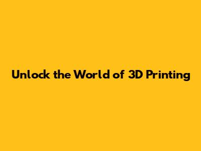 Unlock The World Of 3D Printing
