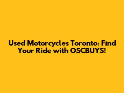 OSCBUYS: Your Partner in Finding Used Motorcycles in Toronto